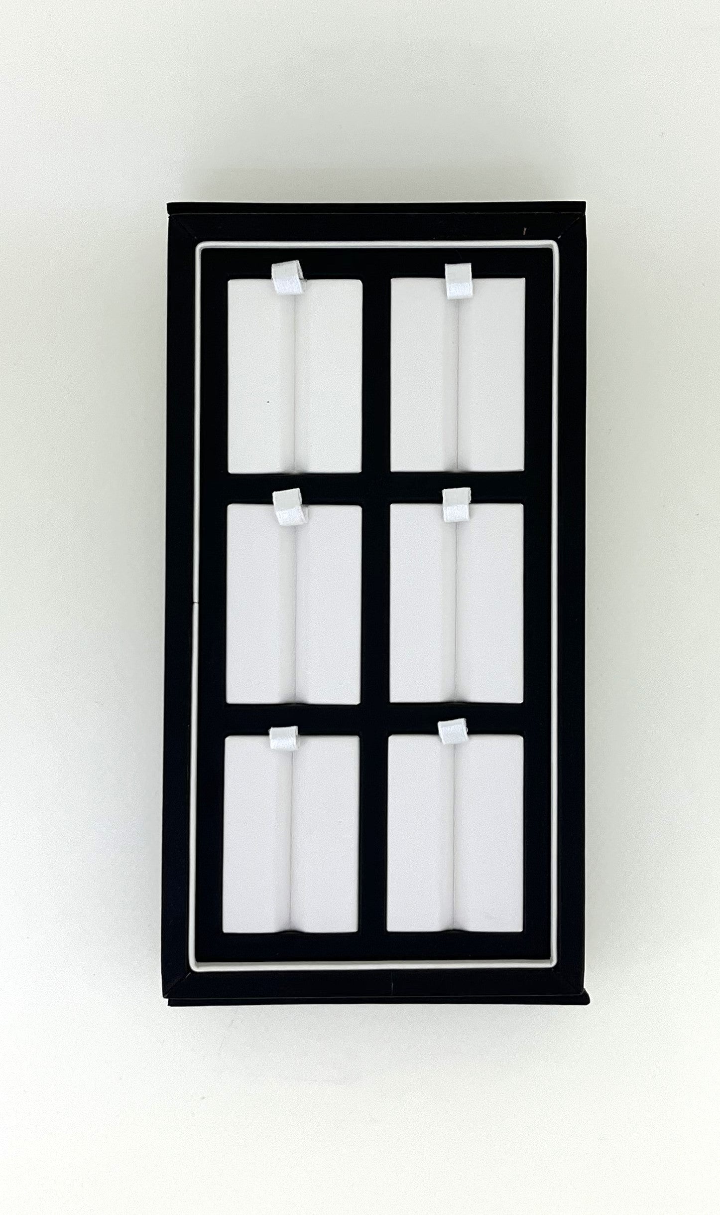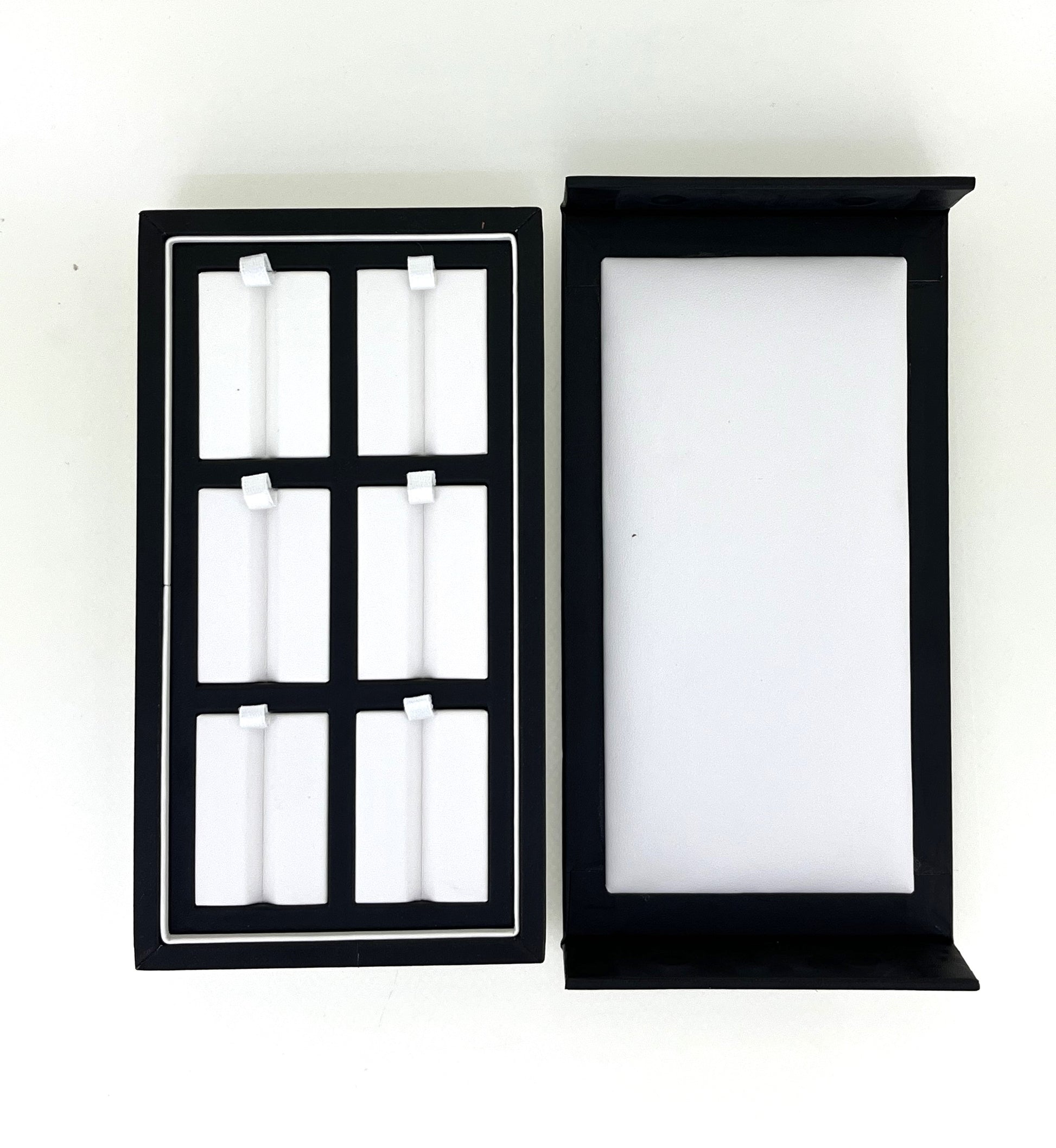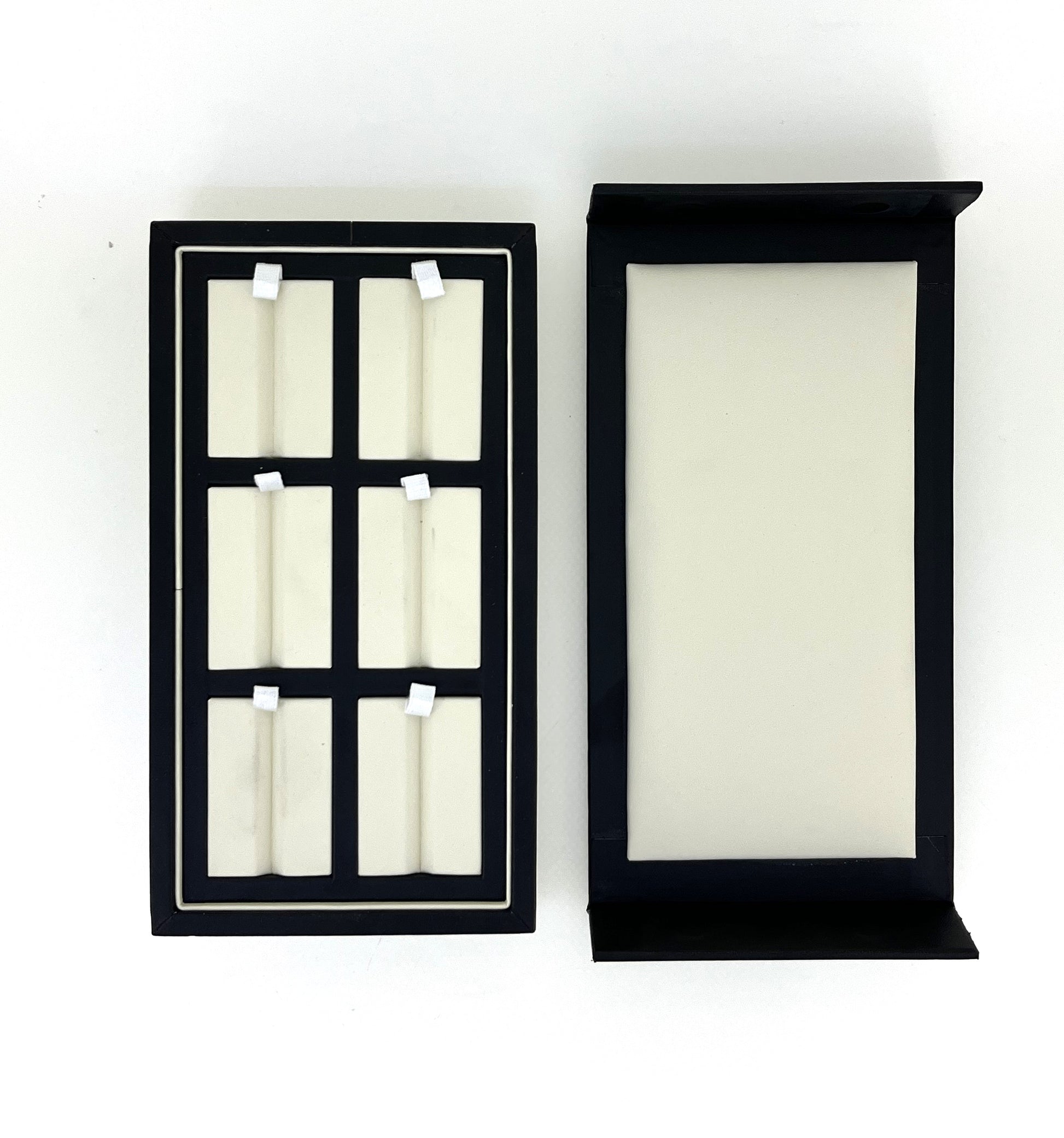 Showcase your gemstones in style with our grooved gem display box. Crafted with a sleek black exterior and a soft cream interior, this display tray features multiple grooves that securely hold gemstones pieces in place. The cushioned slots prevent scratches and enhance the brilliance of each stone, making it ideal for professional jewelers, gemologists, traders, and collectors.