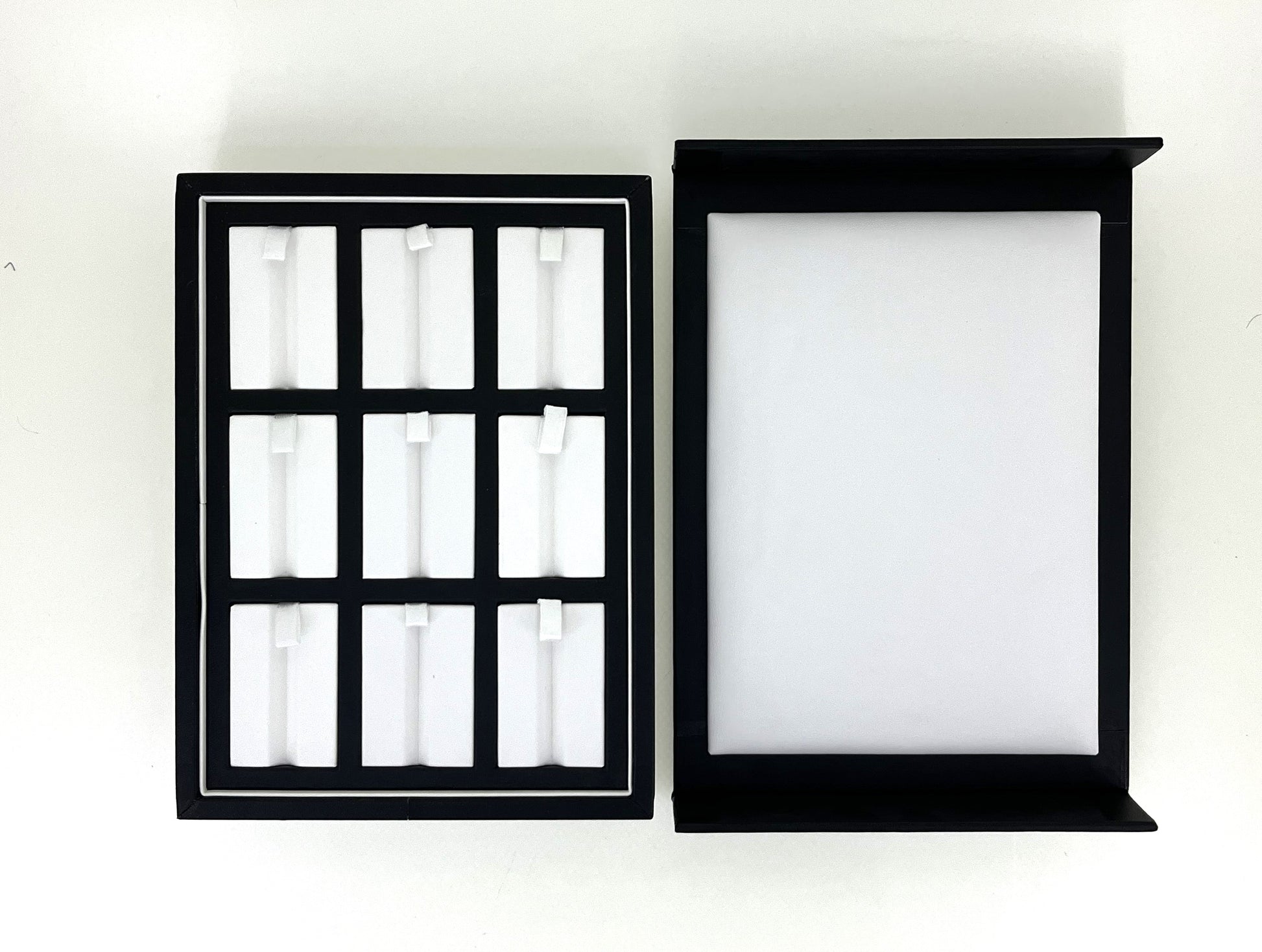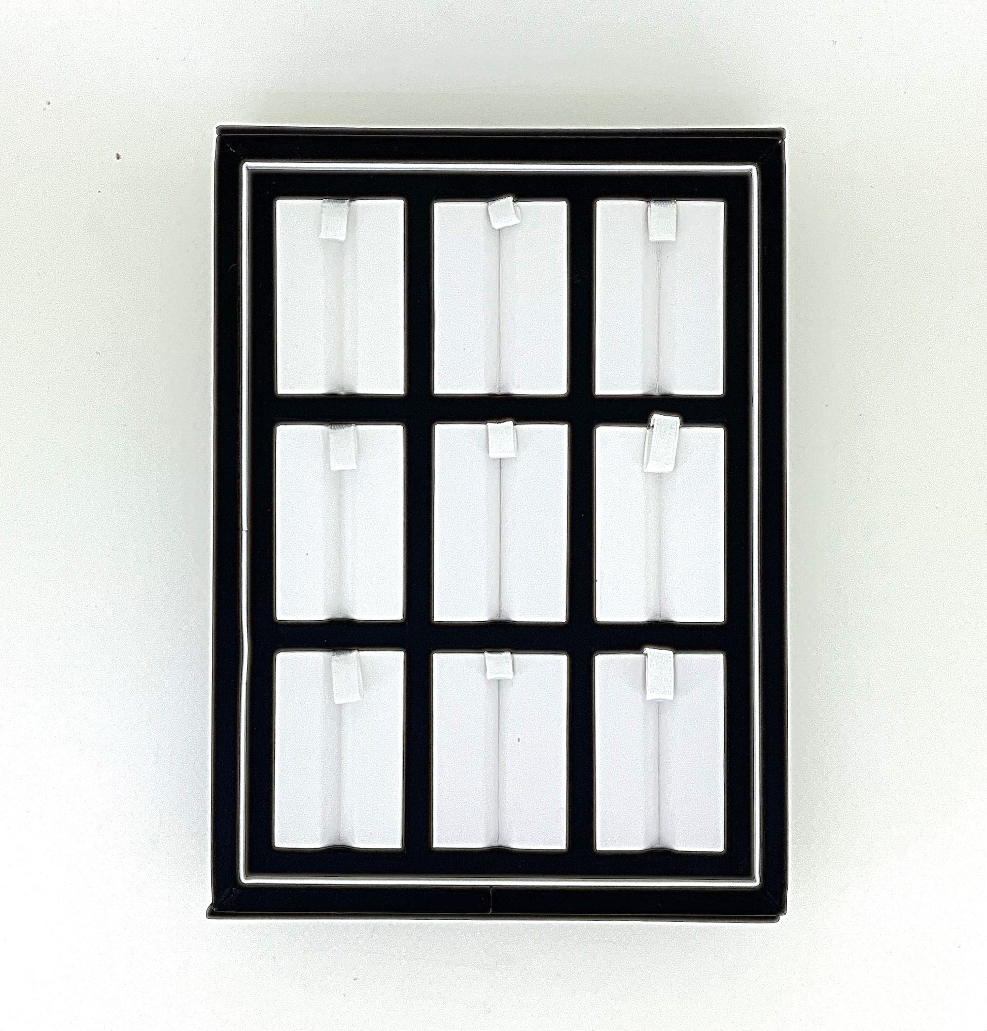 Showcase your gemstones in style with our grooved gem display box. Crafted with a sleek black exterior and a soft cream interior, this display tray features multiple grooves that securely hold gemstones pieces in place. The cushioned slots prevent scratches and enhance the brilliance of each stone, making it ideal for professional jewelers, gemologists, traders, and collectors.